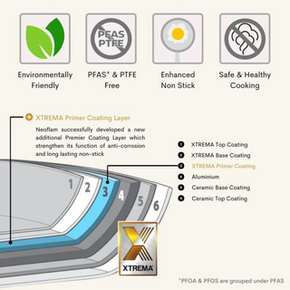 Experience the unparalleled performance of our pioneer Xtrema™ coating technology - the ultimate non-stick ceramic coating that's completely free of harmful chemicals.